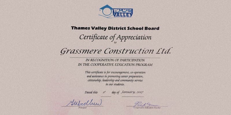 Grassmere Construction is a proud supporter of our local high school co-op program. Recently, Logan, a senior at Thames Valley District School Board completed a co-op term with our team.